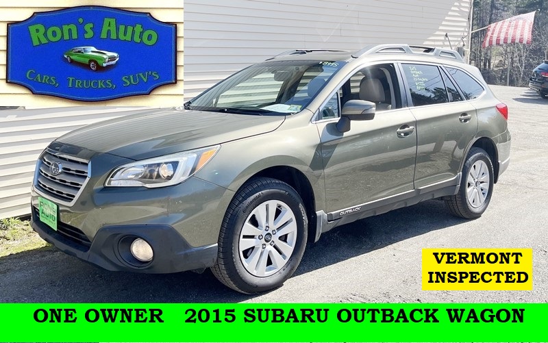 2015 Subaru Outback ONE OWNER VERMONT INSPECTED ALL WHEEL DRIVE 4 Door Wagon, 2.5-4 Cylinder, Automatic, Power Windows, Locks, Mirrors, Moonroof & Seat, AM/FM/CD 164450 Miles Green $7995