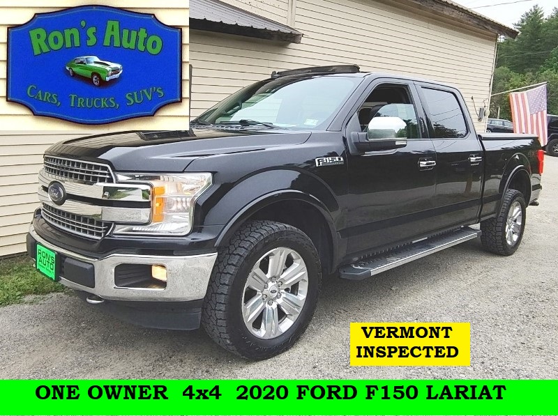 2020 Ford F150 Lariat ONE OWNER VERMONT INSPECTED 6.5 FOOT BED, Crew Cab Pickup Truck, 4×4, 5.0- V-8, Automatic, Power Windows, Locks, Mirrors, Moonroof & Seat, AM/FM/PHONE/APPS 177325 Miles Black $18995