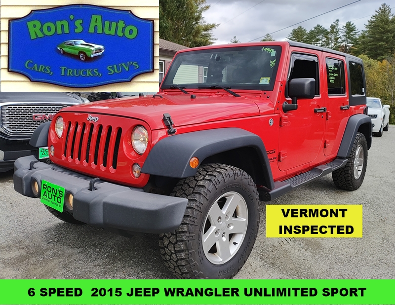 2015 Jeep Wrangler Unlimited Sport MANUAL 6 SPEED VERMONT INSPECTED 4 Door SUV, 4×4, 3.6-6 Cylinder, 6 SPEED, Power Windows & Locks, AM/FM/CD/AUX 228490 Miles Red $9995