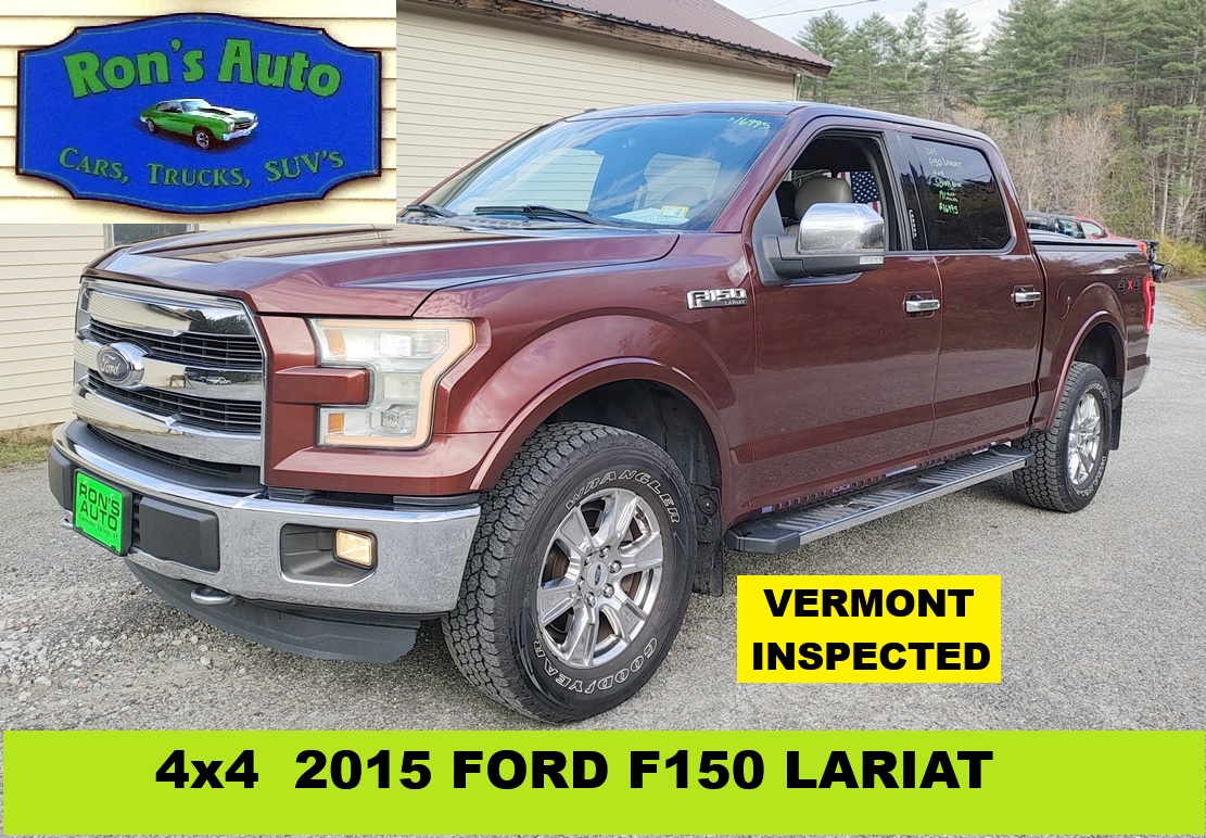 2015 Ford F150 Lariat VERMONT INSPECTED 4 Door Crew Cab Pickup Truck, 4×4, 5.0- V-8, Automatic, Power Windows, Locks, Mirrors, Moonroof & Seat, AM/FM/CD/XM/USB 191645 Miles Burgudy $16995