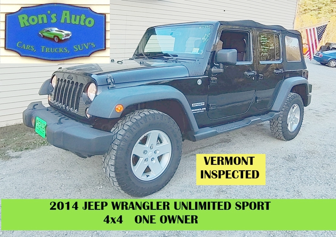 2014 Jeep Wrangler Unlimited Sport ONE OWNER VERMONT INSPECTED 4 Door SUV, 4×4, 3.6-6 Cylinder, Automatic, Power Windows & Locks, AM/FM/CD/SAT/AUX 169805 Miles Black $12995