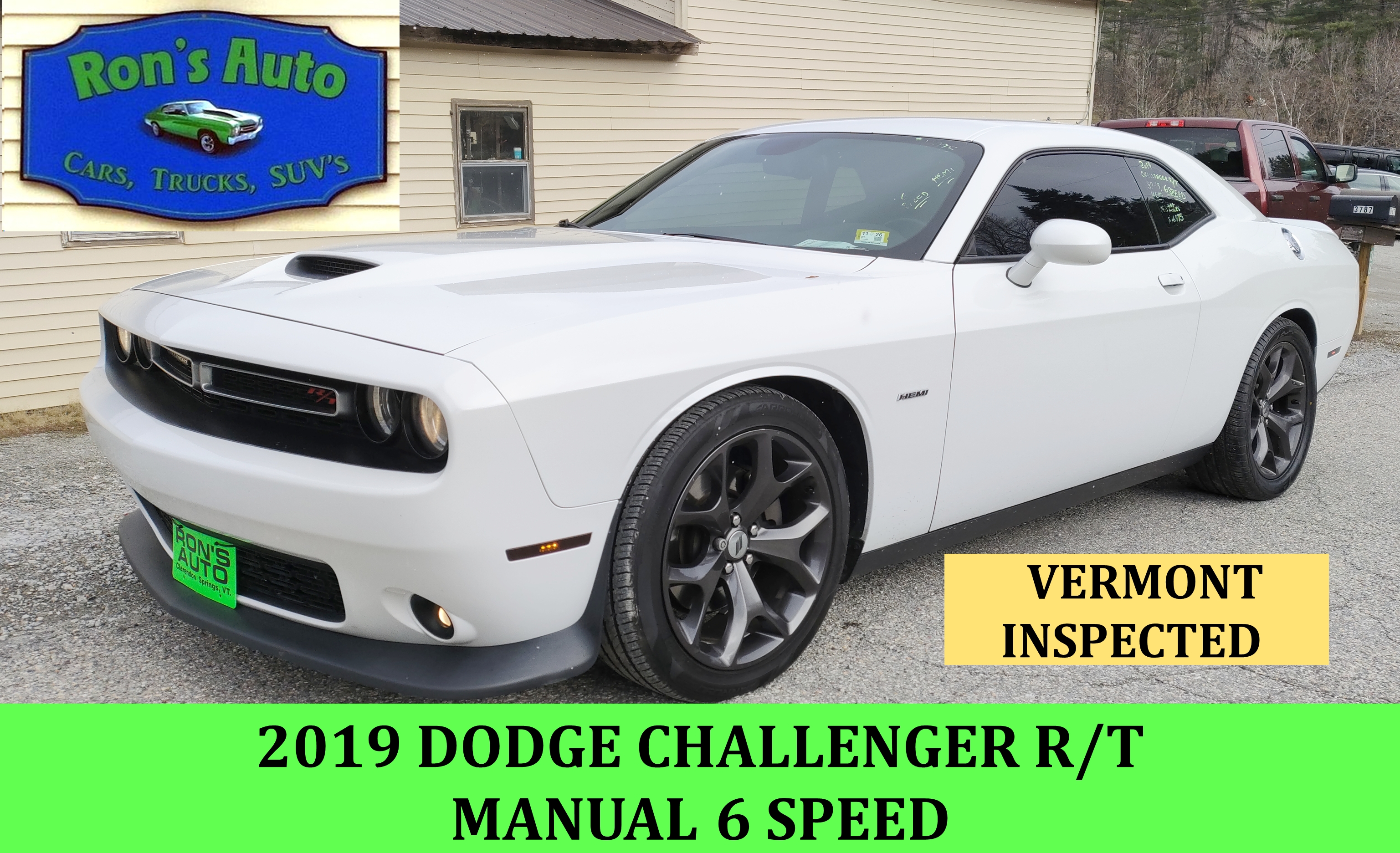 2019 Dodge Challenger R/T VERMONT INSPECTED 6 SPEED MANUAL 2 Door Coupe, 5.7-HEMI V-8, 6 SPEED, Power Windows, Locks, Mirrors & Seat, AM/FM/XM 144060 Miles White $16995