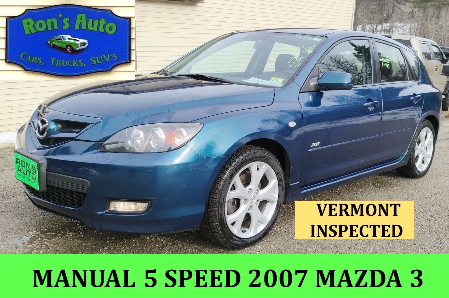 2007 Mazda 3 MANUAL 5 SPEED ONE OWNER VERMONT INSPECTED 4 Door Hatchback, 2.3-4 Cylinder, 5 SPEED, Power Windows & Locks, AM/FM/CD 130335 Miles Blue $4495