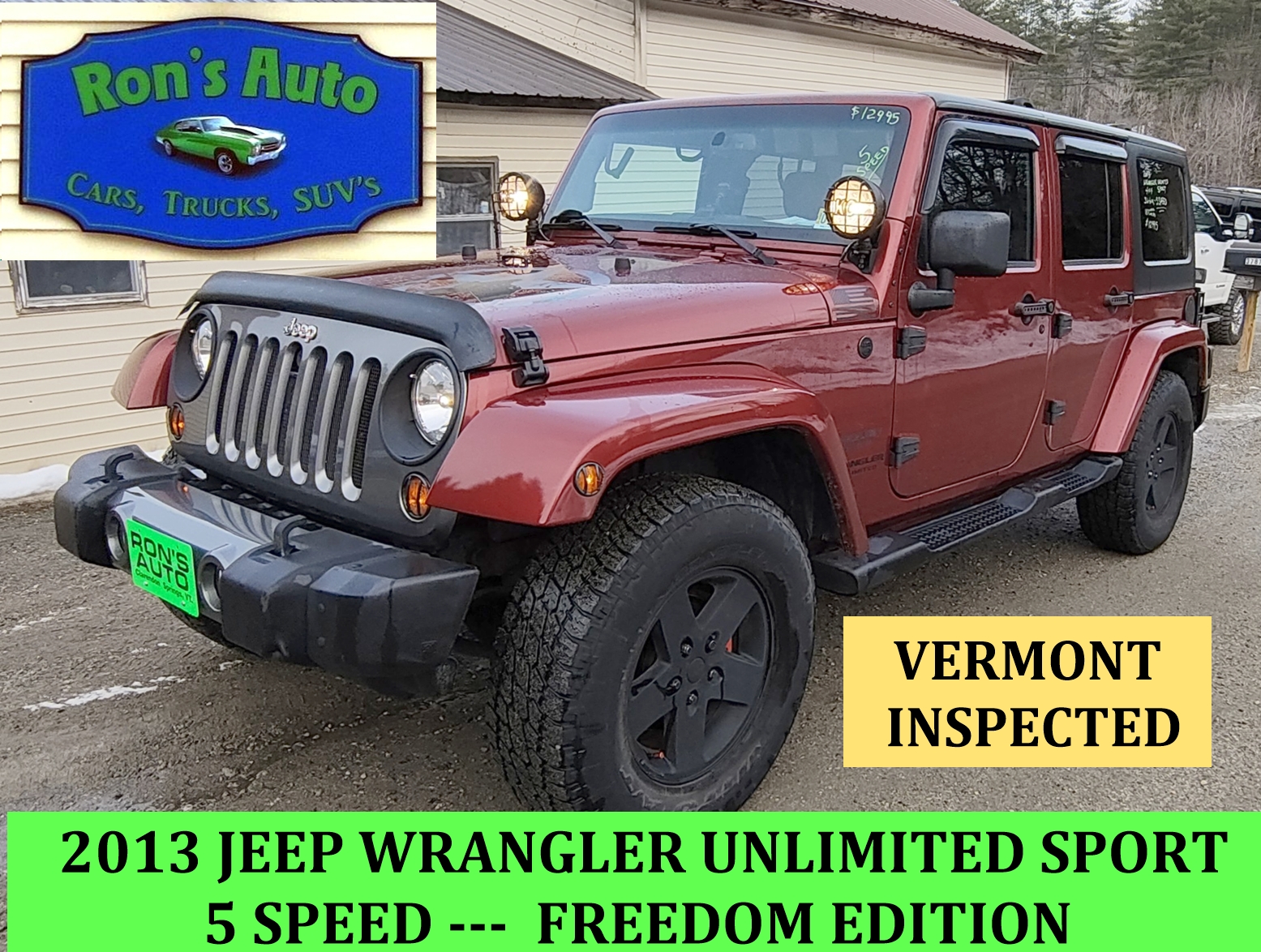 2013 Jeep Wrangler Unlimited Sport FREEDOM EDITION VERMONT INSPECTED 4 Door SUV, 4×4, 3.6-6 Cylinder, 5 SPEED, Power Windows & Locks, AM/FM/CD/SAT 187340 Miles Red $12995